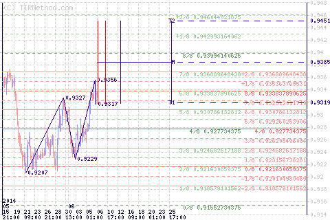 * В случае пробоя уровня локального мах(0.9360) сроки достижения предполагаемых целей 1-3: с 17.00мск 09.06 до 24.00мск 10.06.14.